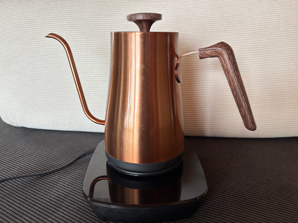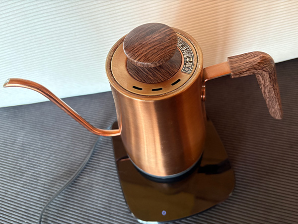お湯といえば電気ポットでしたが、まだ国内で電気ケトルが一般的になる前、海外で出会った電気ケトルに感激!必要な分のお湯をすぐに沸かすことができる、お気に入りの家電の1つです。おうちでハンドドリップコーヒーを淹れるようになってから、細口ノズルの電気ケトルが欲しいなと思うようになりました。そんなときに見つけたのが、YAMAZENの電気ケトルです。温度調節ができて保温機能もあり、「カッパー」という電気ケトルでは珍しいデザインも決め手になりました。