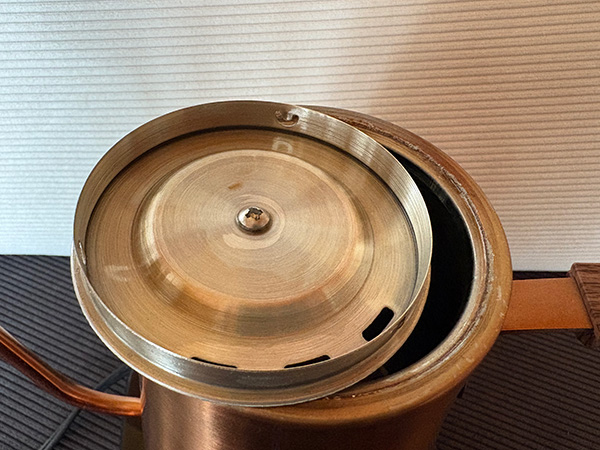 まず大切なのが、コーヒーのハンドドリップに欠かせない細口ノズル。お湯の量を細かくコントロールできるので、勢いよく出すことも、ゆっくり注ぐことも可能です。お湯の落ち方が安定していて、狙った場所に正確に注げます。