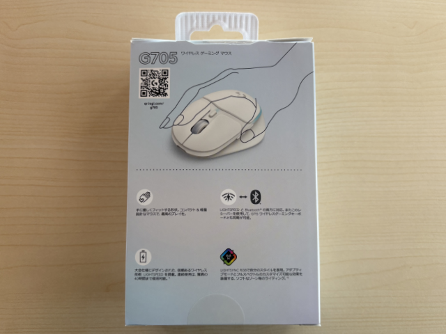 「軽量ボディ」が推しポイントとして紹介されている、G705。約85gという重さは、機能性を備えたゲーミングマウスとしては軽い方なのかと思います。