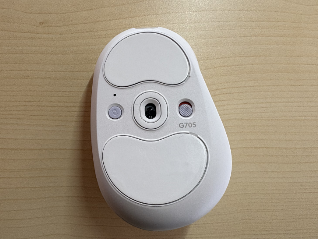 G705は、ロジクールGの「THE AURORA COLLECTION」シリーズの1つ。淡いホワイトカラーに曲線的なデザインで、所謂「ゲーミングマウス」という雰囲気ではなく、デスクに置いても可愛いらしいのが魅力です。